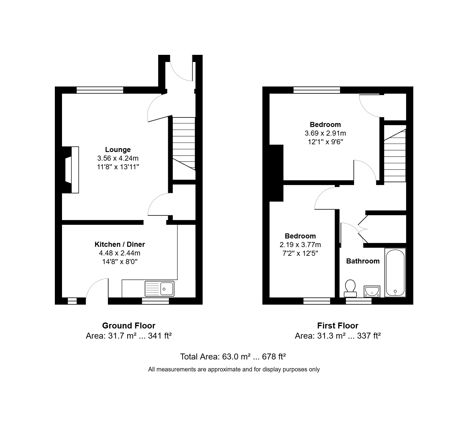 Reception room, kitchen, upstairs bathroom, two bedrooms and a rear garden.