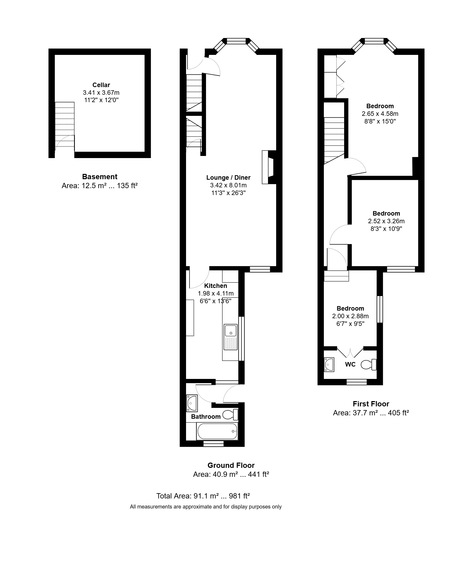 3 bedrooms, 1 bathrooms, 2 receptions